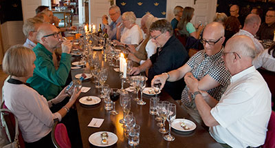 30 förväntansfulla medlemmar genomförde provningen med ett leende på läpparna. Till de fyra sorterna som provades intogs snittar i smaker som t ex Salami, Anklever, chevreost och Löjrom.